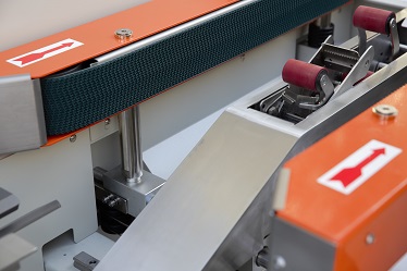 7、下部的膠帶作業(yè),在側(cè)面輸送帶驅(qū)動(dòng)下通過(guò)機(jī)器,有膠帶分割器迅速簡(jiǎn)便地貼上膠帶。