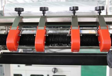 5.自動送料,制袋長度由電眼和計時器的組合自動控制;配有廢料感應(yīng)電機,可自動卷取廢邊。